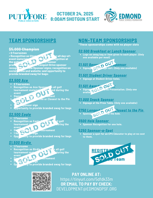 Thank you in advance for your support of the Edmond Public Schools Foundation. If you have questions, please do not hesitate to contact Our Team . We can't wait to tee off with you!
